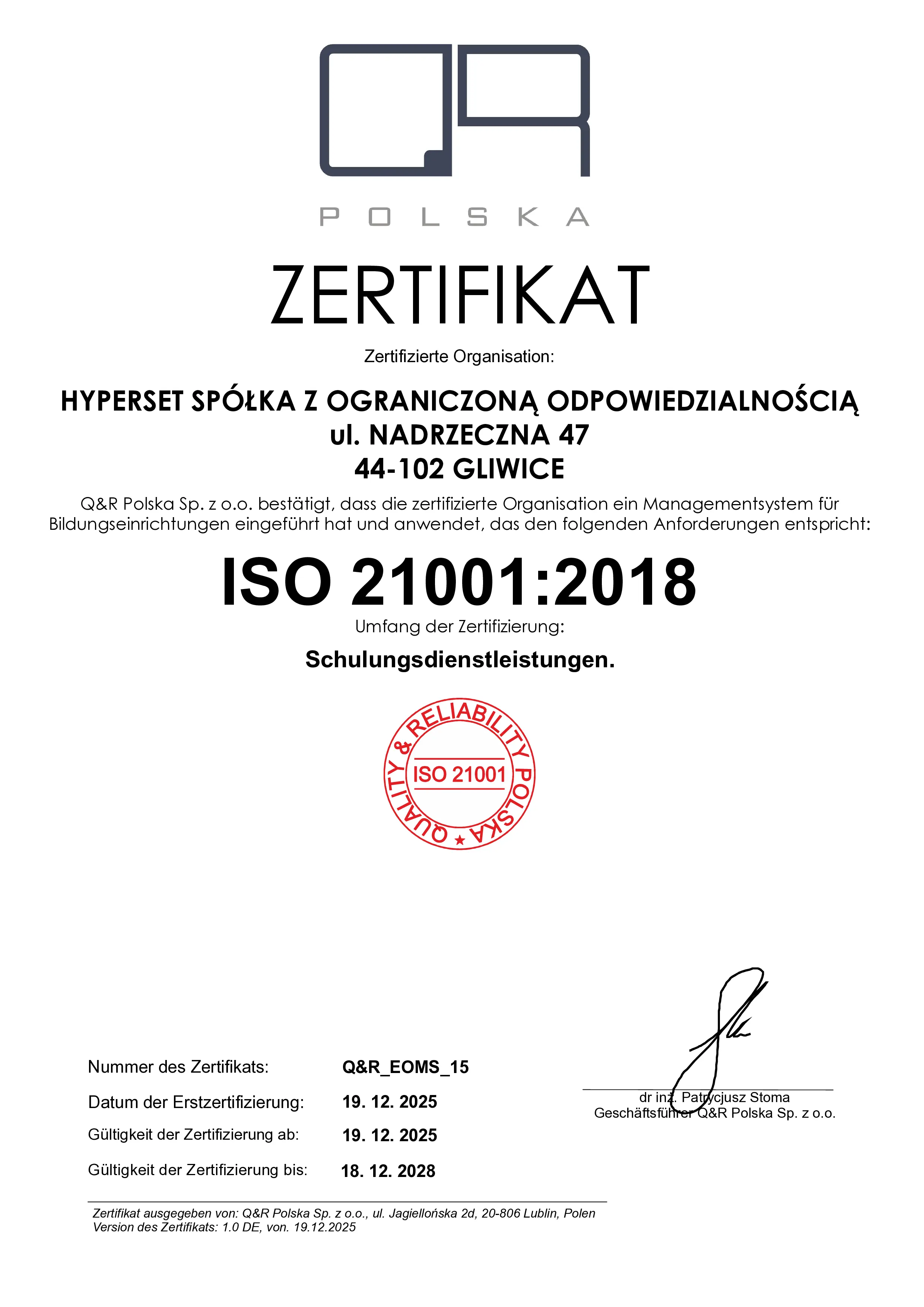 Im Rahmen der Zusammenarbeit bieten wir einen umfassenden Kundenservice vom Anfang bis zum Ende des Prozesses gemäß den Erwartungen unserer Kunden. Wir unterstützen Sie in jeder Phase der Projektumsetzung, von der Bedarfsanalyse über Design, Produktion und Inbetriebnahme von Anlagen bis hin zu deren Wartung. Das Hyperset-Team besteht aus einer Gruppe erfahrener Ingenieure, Designer, Techniker und Programmierer, die ihre Qualifikationen ständig verbessern, um ihren Kunden Dienstleistungen auf höchstem Niveau zu bieten. Unsere Lösungen zeichnen sich durch hohe Qualität und Zuverlässigkeit aus, was in Kombination mit den neuesten Technologien zu optimalen Ergebnissen in der Produktion führt.